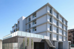 西紫原中学校前バス停より徒歩3分。通勤にも便利な場所です。住宅地の中にあり、パン屋さんやお寿司屋さん、コンビニ、中学校、保育園などが近くにあり、施設に入居しても「生活の風」を感じながら社会との繋がりを保てる場所です。桜の木が多く、春には桜がとても綺麗です。